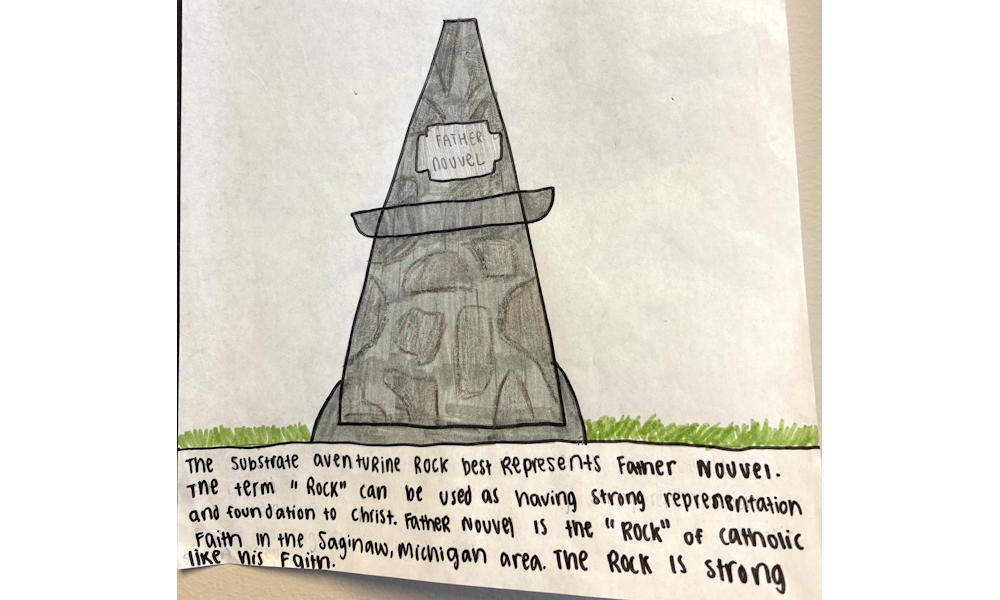 “I think the most overwhelming conclusion from this experiment was how most students used the stone substrate to represent Father Nouvel for his strength, faith and establishing a foundation in our community,” she said. “It made me happy that my students found the same inspiration that I had.”